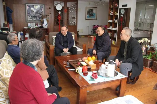 2月10日,在农历小年来临之际,山东省委宣传部副部长、省电影局局长、一级巡视员程守田,山东省文联党组成员、副主席于惠东,山东工艺美术学院党委书记王晓娟,院长董占军一行,专程看望慰问山东省美术家协会名誉主席郭志光先生,向先生提前送上新春祝福与节日问候。