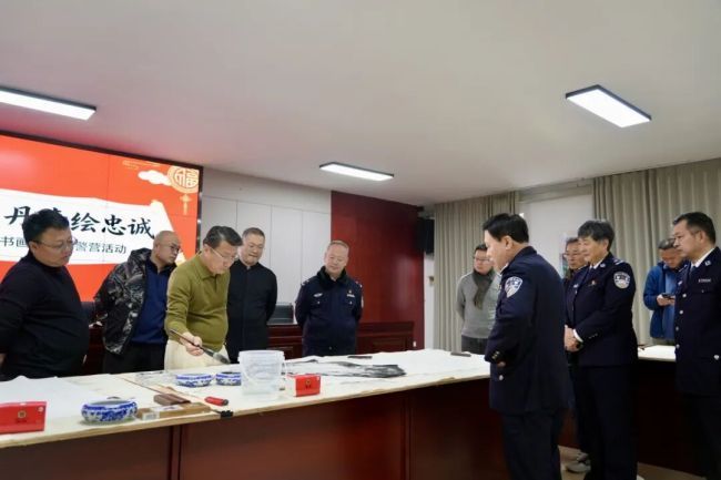 笔会现场艺术家们认真创作,为公安干部民警送上新春祝福