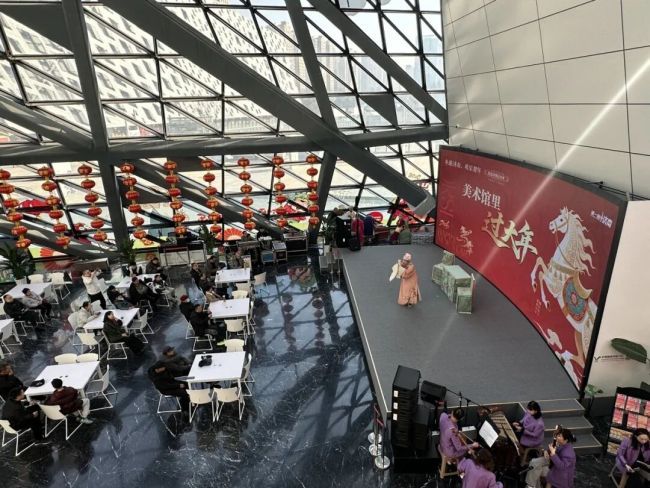 活动当天,美术馆洋溢着浓浓的新春气息,济南市吕剧院的专业演员身着精美戏服登场演绎优秀吕剧剧目《墙头记》。演员们唱腔委婉动听、身段灵动传神,将剧中人物的情感与性格展现得淋漓尽致;地道的齐鲁乡音与精湛的表演技艺,赢得了现场观众的阵阵掌声。现场欢声笑语不断,传统文化的暖意与新春的喜乐相互交融,为市民留下了难忘的文化记忆。