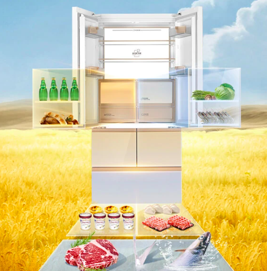 海尔麦浪冰箱AI变频精准控温,冷藏区干湿分储,蔬果7天仍水润新鲜,冷冻区-30℃深冷锁鲜,急速制冷,快速锁住食材原初鲜嫩状态,留存营养,口感如初,关爱用户每餐饮食。