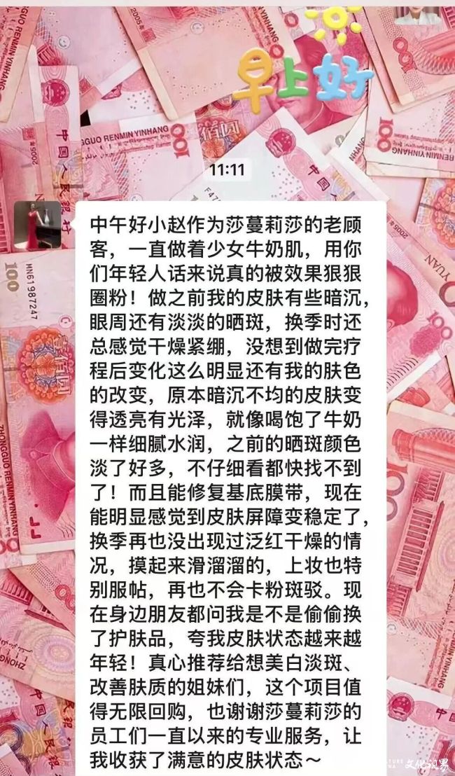 当顾客的分享带着温度跃上聊天框,那些鲜活的“变美日常”,是莎蔓莉莎最动人的勋章。
