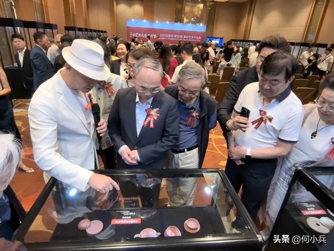 “吕尧臣、吕俊杰父子是宜兴紫砂艺苑的杰出贡献者。他们对吕氏绞泥进行当代工艺演绎,使其成为现代紫砂艺术的独特语言,而二人的创新思维与紫砂艺术创作成果,更为宜兴紫砂走向国际开创了崭新天地。”中国艺术研究院紫砂研究院常务副院长、江苏省工艺美术行业协会副会长、江苏省宜兴紫砂工艺厂厂长徐建荣在开幕式致辞时作出上述表示。记者注意到,开幕式结束后,现场参观者中不乏企业界翘楚:华住集团创始人季琦、新希望集团联合创始人李巍、印尼BUM DESA集团主席拉斯敏·维贾亚、东方创投金控集团董事长柳达礼、康菲石油亚太区总监赵福国等均到场参观。一场紫砂艺术展览,由此尽显国际范儿。