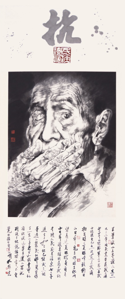 《岁月沧桑——抗战老兵》(270cm×91cm×4)2015年孔维克