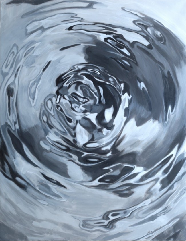 光的旋律:通过抽象化的笔触与动态的黑白对比,呈现出光与暗在流动中的交织与转化。黑暗与光明并非割裂的两极,而是一体两面的存在,彼此依存,互为条件。水,作为光的载体与折射体,其流动与旋转暗示着宇宙间能量的永恒转化——正如太极图中阴阳的相生相克,光并非消灭黑暗,而是与之共舞,形成一种动态的平衡与连贯性。