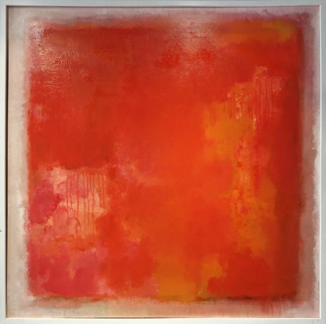 在抽象表现语境中,通过大面积的色彩块营造沉浸式的视觉与情感体验,强调色彩本身的精神性表达。色彩表现上以红色系为主导,色彩层次细腻且过渡自然,通过同色系的深浅变化构建出柔和的视觉张力,传递出温暖、厚重且富有诗意的情绪,仿佛在引导观者进入一种冥想式的精神空间。表现手法上,画面笔触含蓄,色彩以晕染、薄涂的方式呈现,带有细微的肌理变化,弱化了笔触的存在感,突出色彩本身的纯粹性与感染力。无具象空间与明确构图,以大面积的色彩块形成“色域”,边缘与背景的浅色过渡模糊了画面的边界,营造出一种无限延伸的视觉效果,让观者的注意力完全聚焦于色彩的情绪表达。作品旨在唤起观者的内在情感共鸣,红色系的运用可能传递出温暖、沉思或略带压抑的复杂情绪,引导观者在色彩的沉浸中探索自我的精神世界。