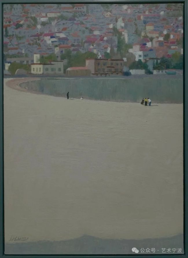 色彩,是艺术与时尚最直接的对话。吕洪樑的油画《赶海去》《阳光下》,那片湛蓝的天空与黄色的沙滩给人以一种深呼吸般的松弛。如果说蓝与黄是向外的、集体的记忆,那么粉灰色的《普罗透斯的乐园》则是向内的、私密的梦境。