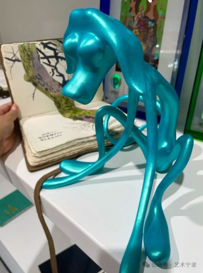 现场人气最旺的当然是以当代雕塑形式出现的潮玩艺术“萌宠”。这些萌趣夸张的外形逾越了现实的物理与逻辑拘囿,创造出奇幻、荒诞的艺术世界,让人们从现实的压力和规则中解脱出来,进入一个充满想象力的空间,获得精神上的放松和自由。
