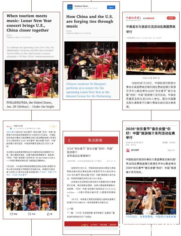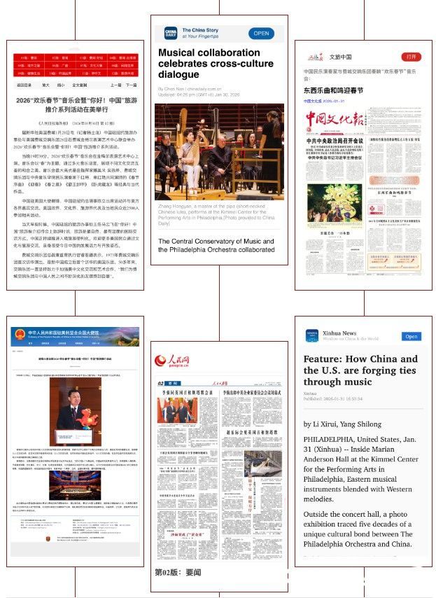 从费城到华盛顿,此次赴美系列演出与学术交流,让中国音乐在国际舞台绽放光彩,彰显了中华优秀传统文化的深厚底蕴与时代活力,也推动了中外音乐的交流互鉴。本次系列活动引发海内外主流媒体广泛关注,新华社、人民网、中国新闻网、中国网、《光明日报》《中国文化报》《中国艺术报》、CHINADAILY等纷纷予以了报道。