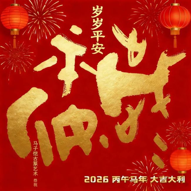 岁次丙午,序属新春。万象更始,九州同庆。西泠名家马子恺先生,承三代吉金遗韵,秉古篆薪传之挥毫泼墨,撰书春联福字,以襄盛节。