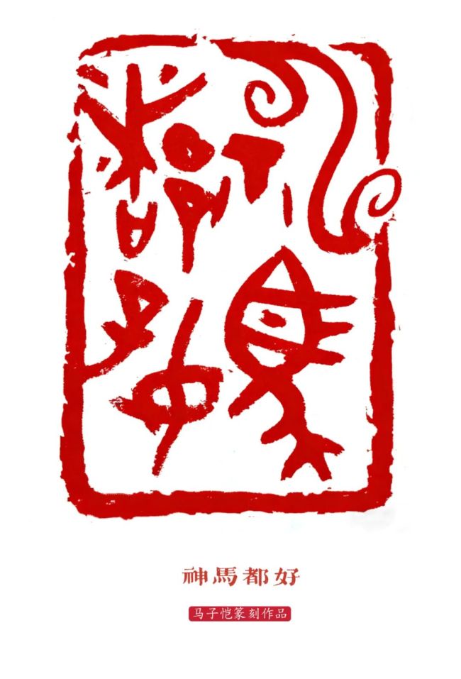 当此辞旧迎新之际,古篆挥春,焕然一新,一纸春红,胜却万语。殷契周铭,光耀门楣。千年文脉,烟火人间。实为纳福之瑞物,文明之辉彰。可谓:马踏春风传瑞籀,福随翰墨满乾坤。