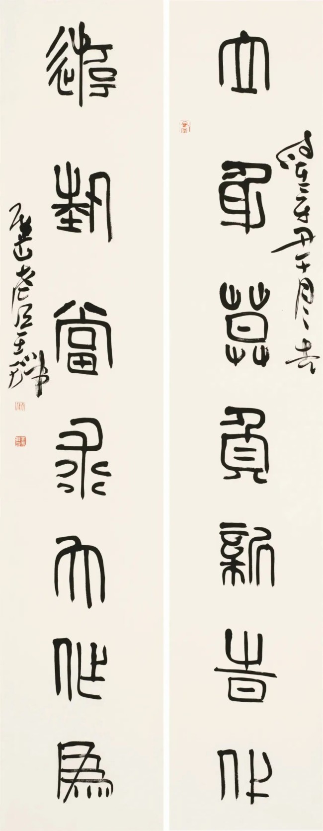 世人论书画者,常将“金石气”三字悬于齿颊,仿佛沾得些古铜锈迹、碑版斑痕,便算得了古朴真髓。然真能解此三字者,古今寥寥。金石气非关残破,亦非关古旧,乃是时间沉淀后依然跃动的生命力。初见王瑞的艺术,无论是那些钤于素笺上的朱痕,还是悬于素壁间的墨迹,都让人倏然间忘却了身在当下。那气息既远且近,既古且新,仿佛商周的吉金、秦汉的碑版并未成为历史的尘埃,而是在某一刻被重新唤醒,化作了纸上烟云、石上华章。这种奇异的时空错位感,源自他数十年如一日对古文字的沉浸,更源自他以刀法入笔法、以笔意通刀意的独特艺术路径。在他的艺术世界里,书法与篆刻不是两门独立的技艺,而是一体两面的生命表达,是同一股气息在不同媒介上的吐纳。