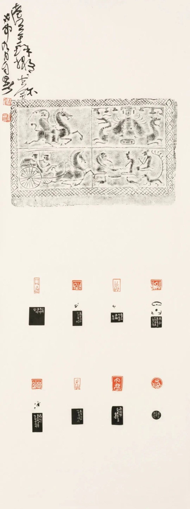 世人论书画者,常将“金石气”三字悬于齿颊,仿佛沾得些古铜锈迹、碑版斑痕,便算得了古朴真髓。然真能解此三字者,古今寥寥。金石气非关残破,亦非关古旧,乃是时间沉淀后依然跃动的生命力。初见王瑞的艺术,无论是那些钤于素笺上的朱痕,还是悬于素壁间的墨迹,都让人倏然间忘却了身在当下。那气息既远且近,既古且新,仿佛商周的吉金、秦汉的碑版并未成为历史的尘埃,而是在某一刻被重新唤醒,化作了纸上烟云、石上华章。这种奇异的时空错位感,源自他数十年如一日对古文字的沉浸,更源自他以刀法入笔法、以笔意通刀意的独特艺术路径。在他的艺术世界里,书法与篆刻不是两门独立的技艺,而是一体两面的生命表达,是同一股气息在不同媒介上的吐纳。