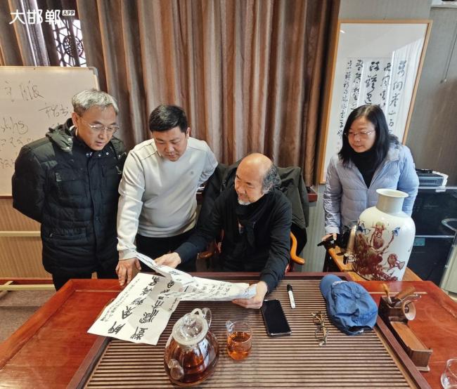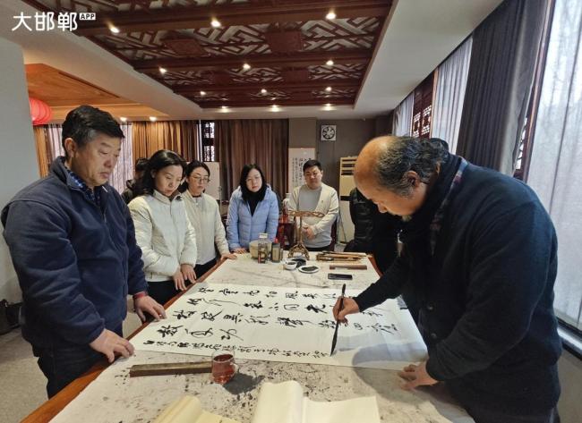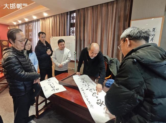 讲罢,李琦为大家现场书写示范。他用行草笔法,书写了前段时间应邀观看韩鹏飞豫剧专场时赋就的诗《韩鹏飞豫剧专场欣赏》——