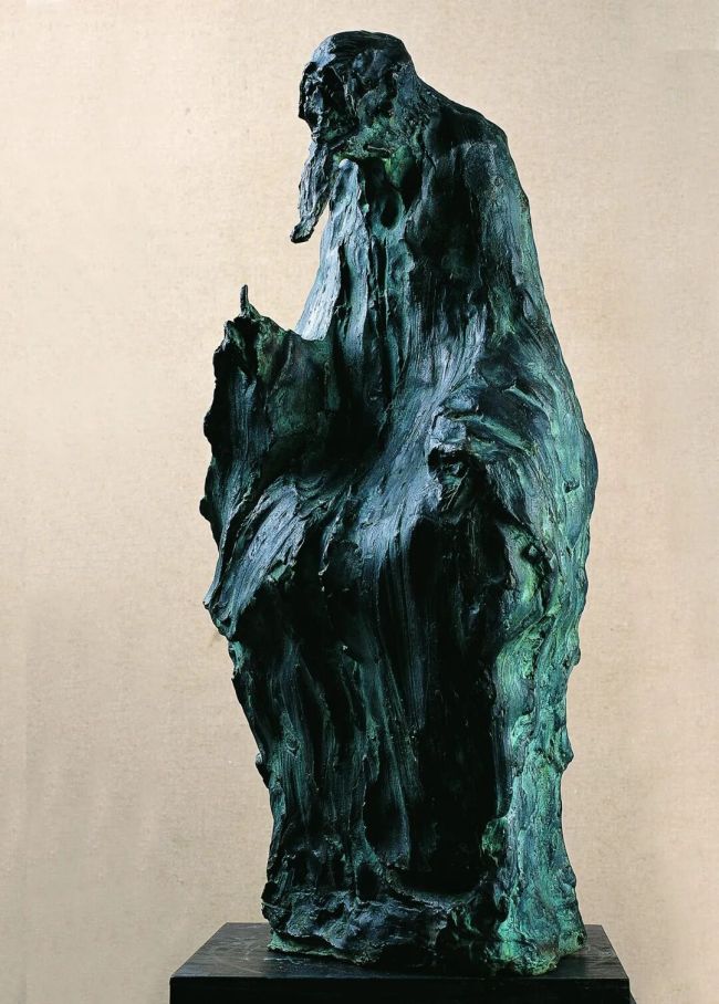 吴为山将这份跨越千年的英雄气概,化为可触可感的青铜形态,让大禹的精神在时光中绽放。《大禹》雕塑,如上古陶俑,古拙朴素,却自有一种雄浑磅礴的气势,通身散发着古朴的装饰之风,仿佛从远古走来,带着山河的厚重与岁月的沧桑。