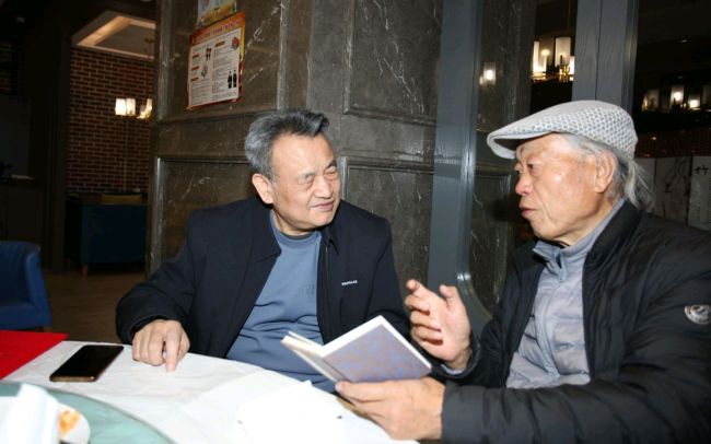 中央美院老同学李师明、盛洪义三十三年后再相聚,共议“盛洪义书画篆刻展”事宜